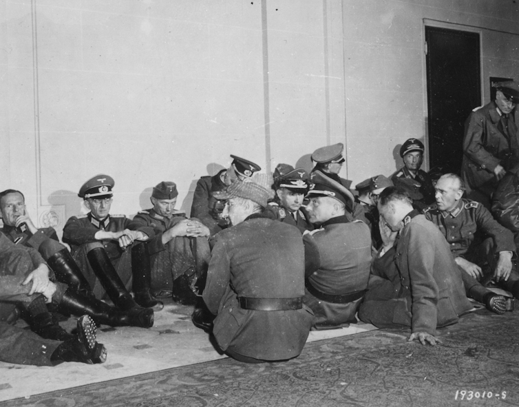 Des officiers allemands de haut rang, capturés par les troupes françaises libres qui ont libéré la capitale de leur pays, sont logés à l’hôtel Majestic, quartier général de la Wehrmacht à l’époque de l’occupation nazie, 26/08/1944. Credit National Archives and Records Administration (NARA), photo n° 111-SC-193010